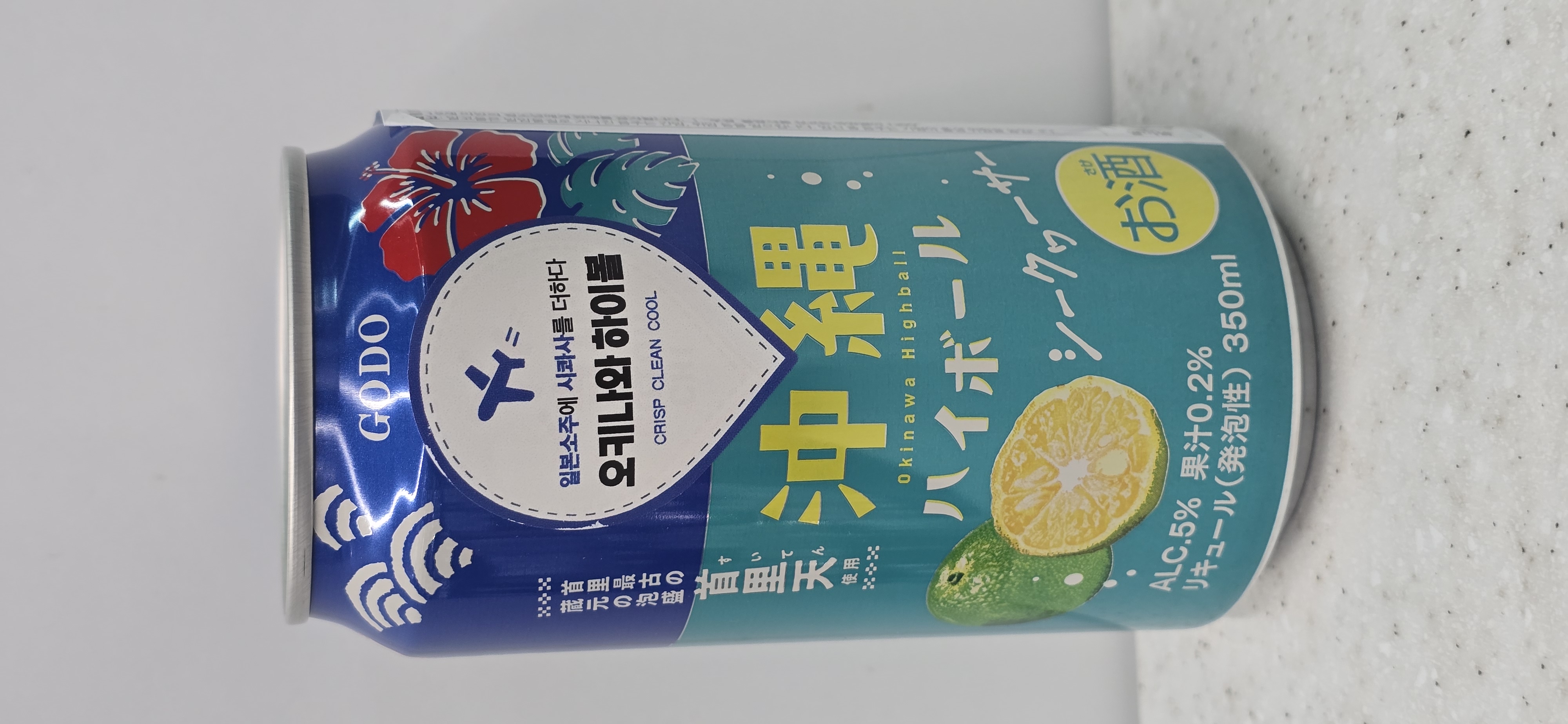 이번에 소개할 제품은 ‘오키나와 하이볼’입니다. 일본 소주에 오키나와 지역 특산 시쿠와사(シークヮーサー) 과즙을 더한 리큐르 캔 음료로, 은은한 청량감과 상큼함이 특징이죠.